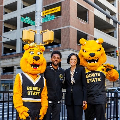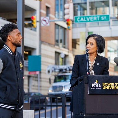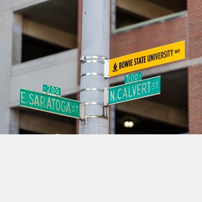 A new street sign in Baltimore City honors the legacy of Bowie State, Maryland's first HBCU. Mayor Brandon Scott joined Dr. Aminta H. Breaux to unveil Bowie State University Way, marking the site where the university was founded in 1865. Read More >